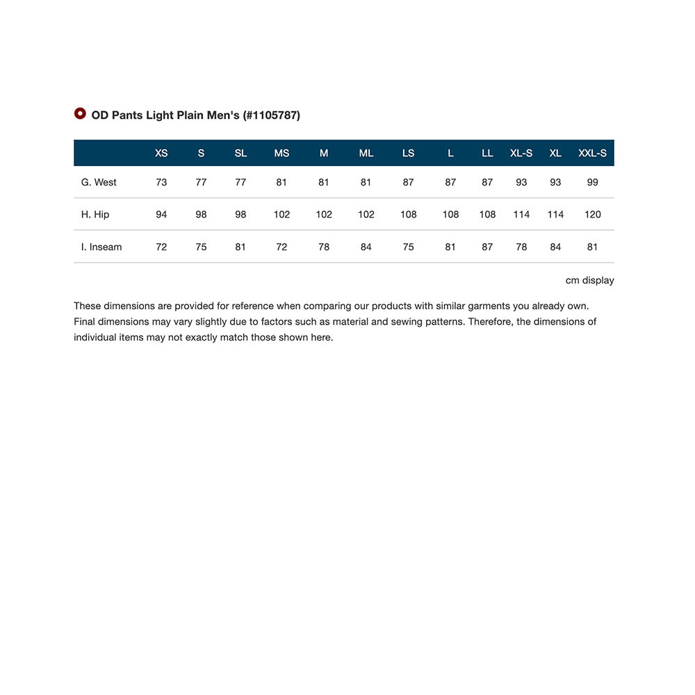 貨品: MONTBELL MEN'S OD LIGHT SIMPLE PANTS