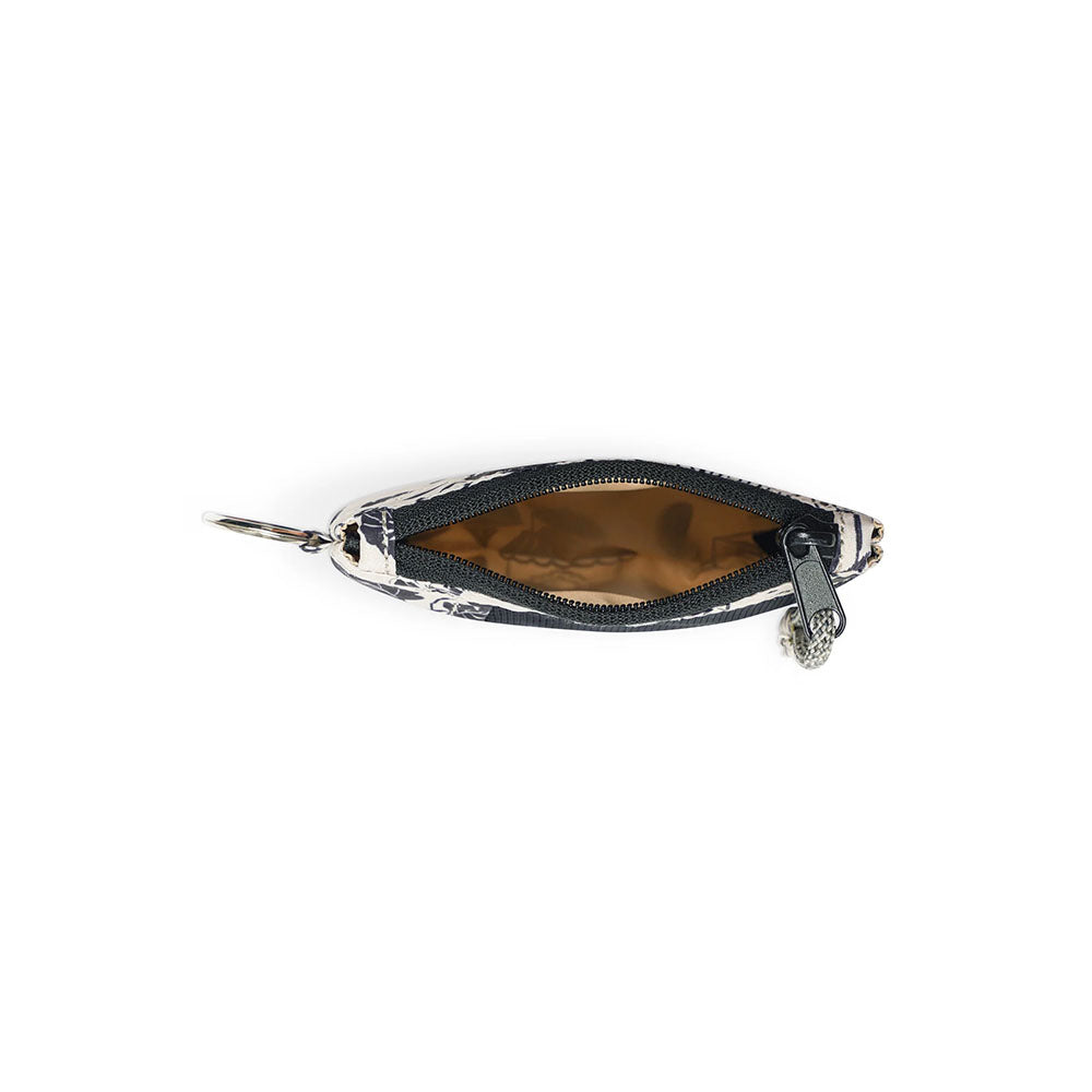 Design: A streamlined, low-profile zip pouch with a metal key ring for secure attachment to bags or belt loops.