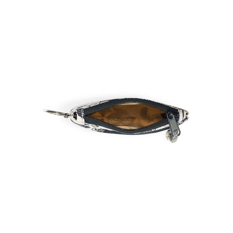 設計風格:一款極低剖面、流線型的拉鍊小錢包。配有堅固的金屬鑰匙圈,可安全掛在包袋內部或腰帶環上。