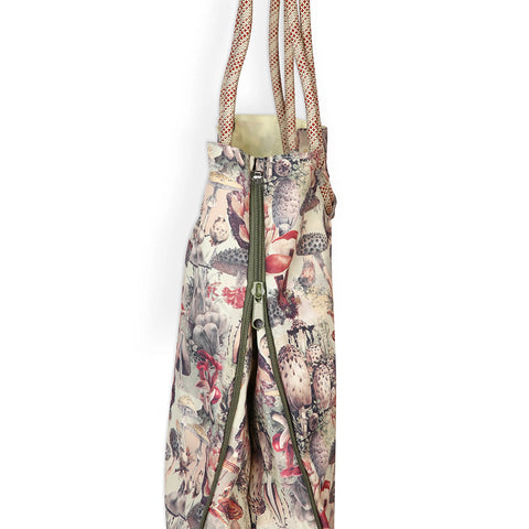 Large tote with fixed rope shoulder straps and expandable main compartment.