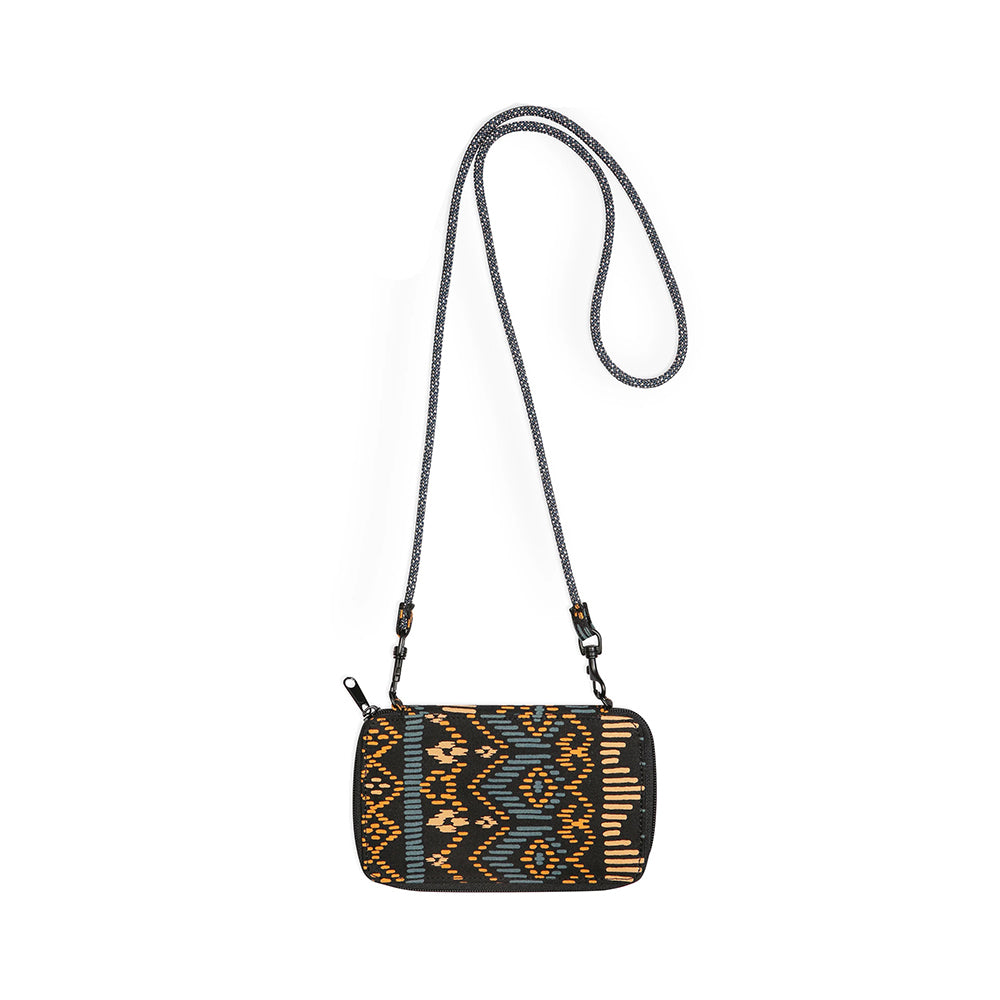 This cross body bi-fold wallet case features a fixed rope shoulder strap that can detach with metal spring hook hardware, one main compartment with zip closure, internal zip pocket and multiple internal cash, card and ID slots. It's go time!